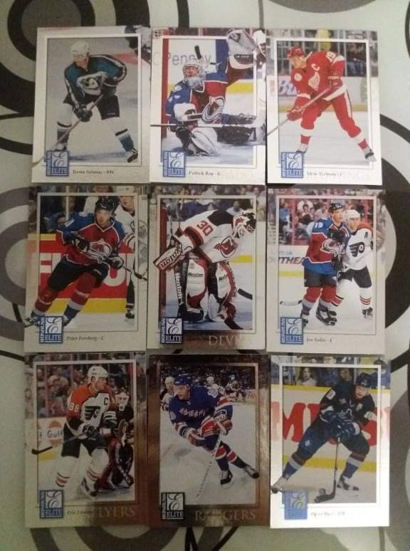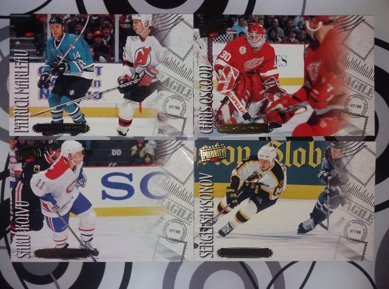 druhým boxem byl box 97-98 Donruss Elite - jedná se o produkt, který nabízí spoustu různorodých karet insertů a paralel karet (gold jsou v limitu 100). Nicméně můj hon se zaměřil na gold paralel kartu Pata Lafontaina (2 různé) které mi schází ve sbírce...