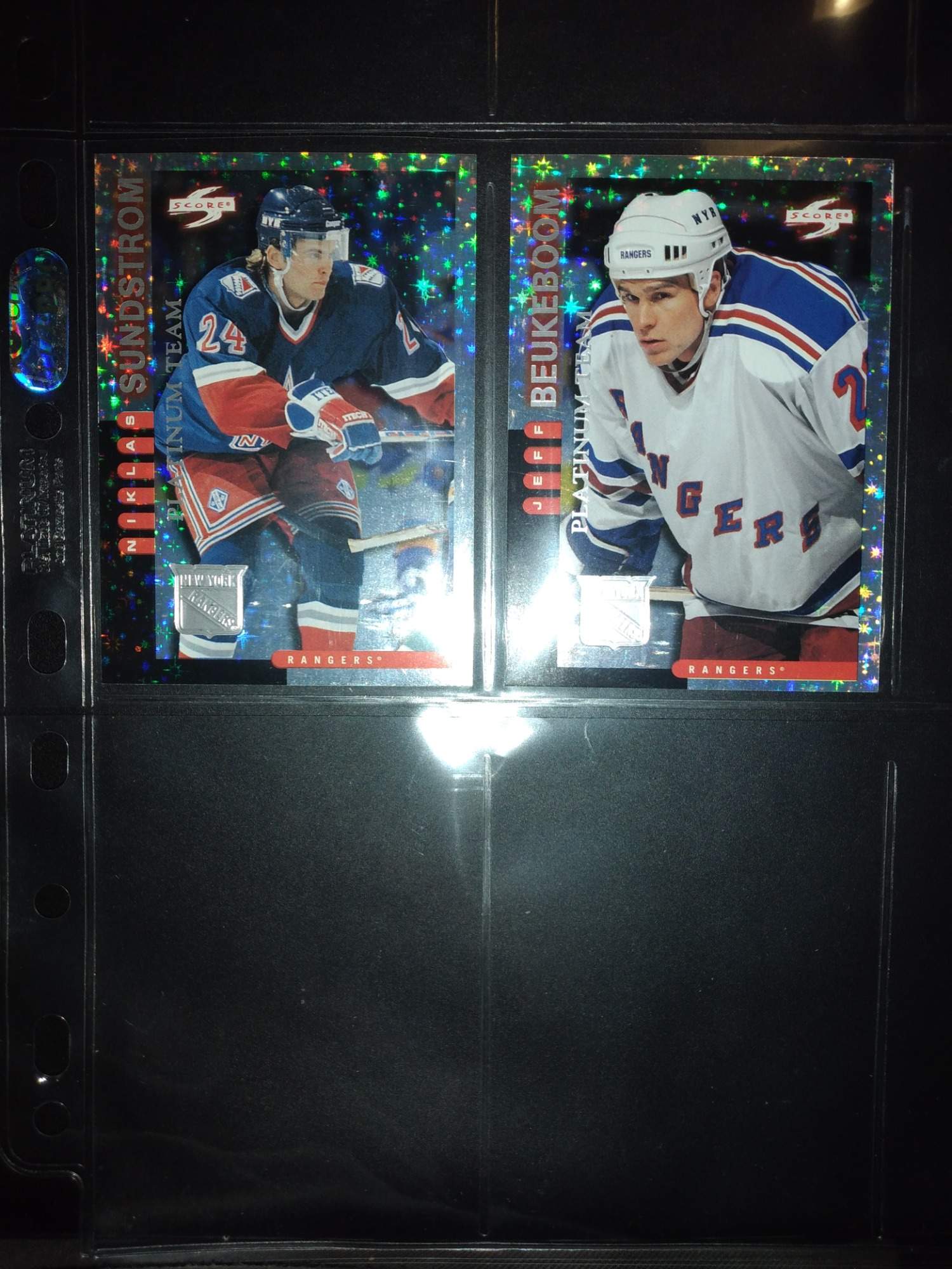 Score 97-98 NYR team set. Ten jsem posklàdal skoro celý,kromĕ karty č.17,tak kdyby někdo měl tak sem s ní :D mimo to tam byli dvĕ karty platinum team,śkoda jen že nebyl Gretzky